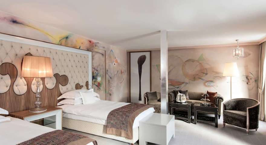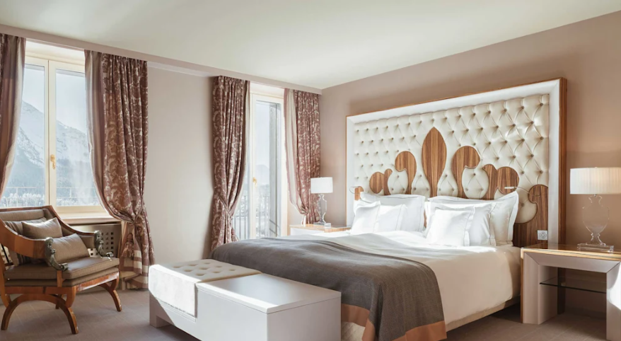The hotel is perched high above Lake St. Moritz and offers direct access to the region's natural activities. This location makes it ideal for winter skiing, summer hikes through alpine meadows, and a relaxing getaway overlooking the majestic landscape.